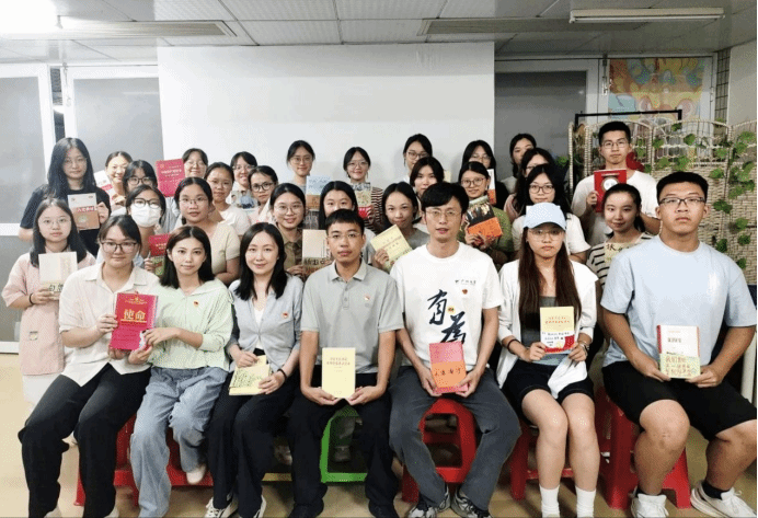 学生第三党支部书记饶珈瑞老师结合《习近平的七年知青岁月》分享了自己设计的书腰,她表示选择竹子作为主要元素,是因为竹子有着经霜不凋的秉性气节和坚韧不拔的意志品质。饶老师希望同学们能够深刻体会书中所传达的精神力量并将其融入学习和生活中,在逆境中坚守自己的信念和原则,以韧竹般的精神、蓬勃的朝气和昂扬的斗志去迎接挑战,用青春书写出无愧于心的华彩篇章。